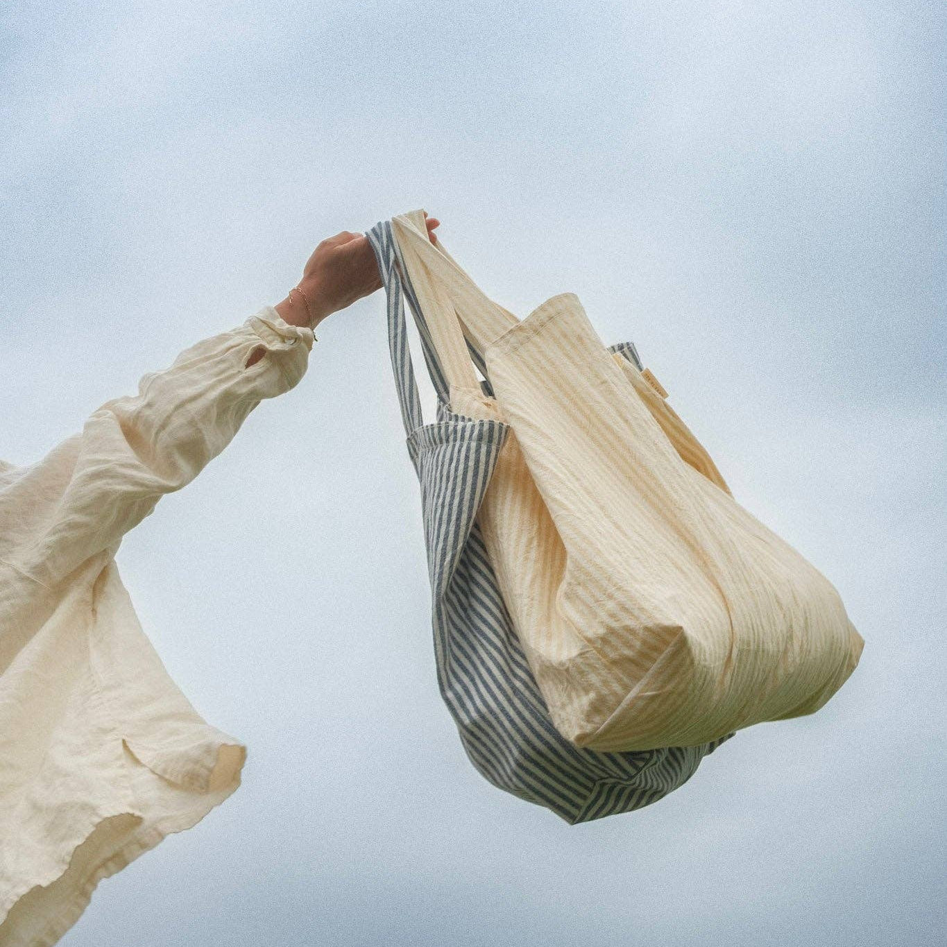 Notre préféré de la saison ! Son tissu rayé et texturé nous rappelle les vacances en bord de mer et sa taille est parfaite pour transporter toutes vos courses quotidiennes.